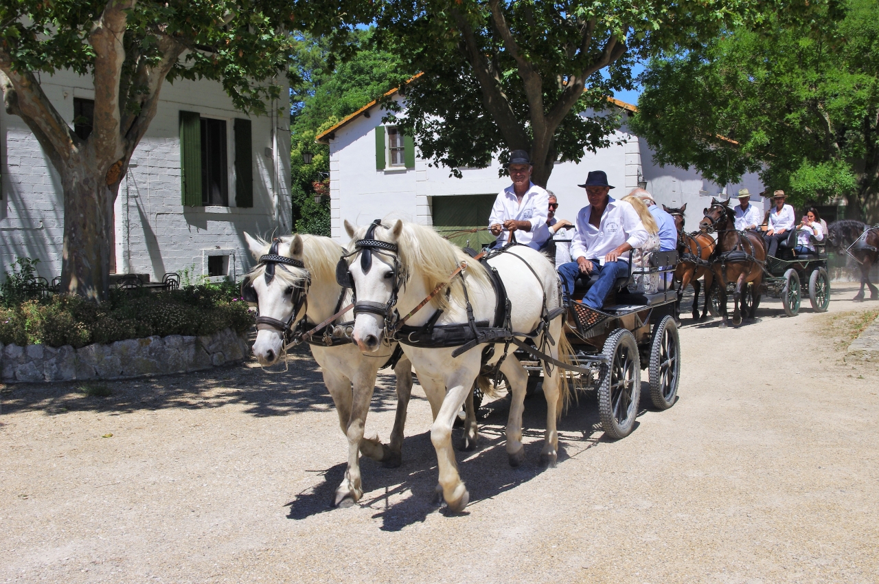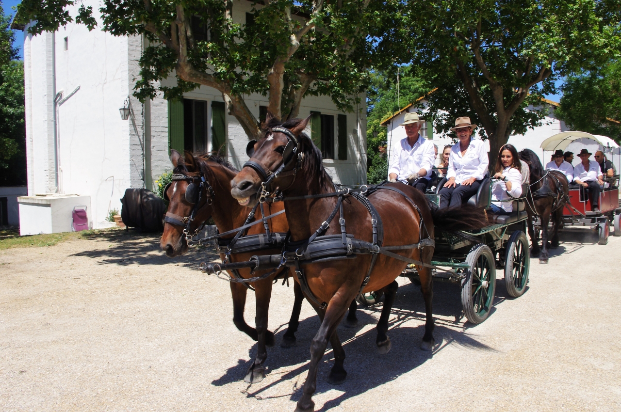 Nous allons être accompagnés par quatre attelages Catalans, ce qui va faire un convoi de 8 calèches 16 chevaux et vingt personnes.