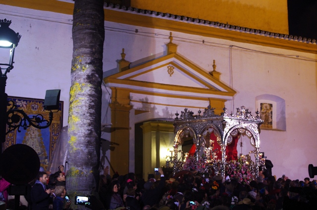 Toute la journée du vendredi et du samedi les hermandad vont présenter leurs bannières a la vierge.
