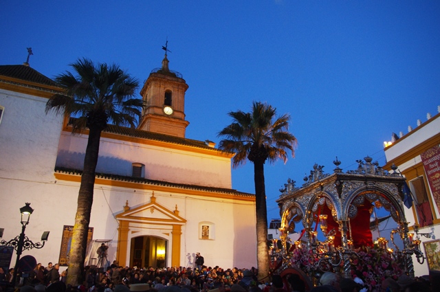 Le dimanche matin, les hermandad mènent leurs bannières à coté de l'église pour la messe en plein air.