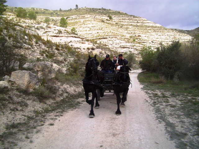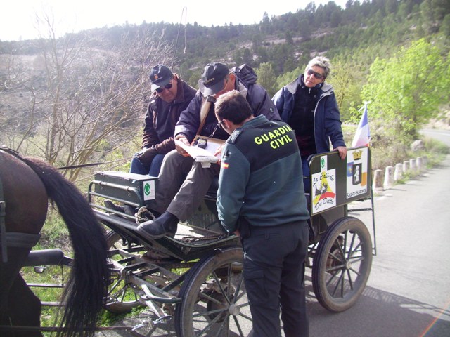 Dans l'un de ceux-ci, contrôle de la Guardia Civil pour non ramassage des crottins sur la chaussée....