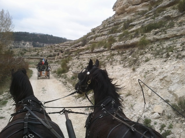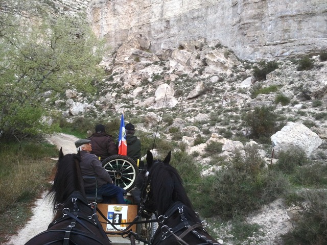 Pour les calèches, la journée commence par une longue suite de villages troglodytes dans une vallée encaissée.