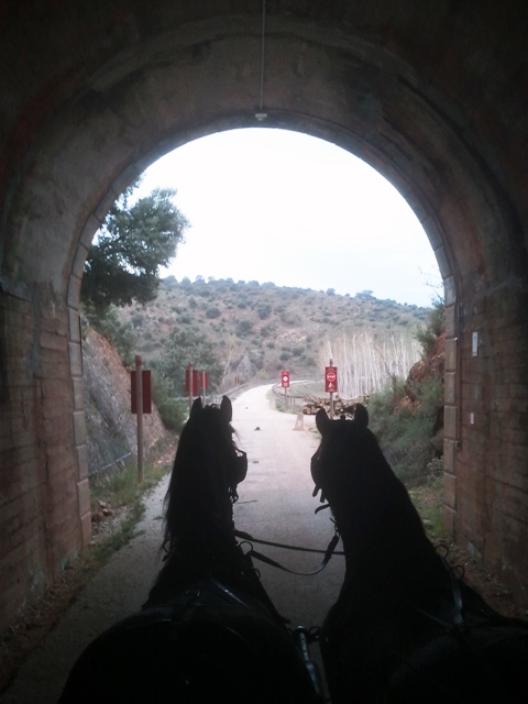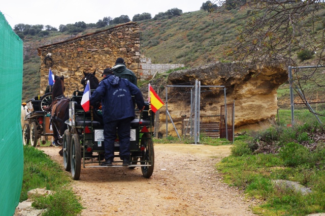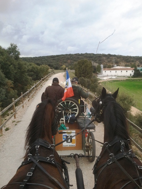 Il est midi et les calèches vont arriver.Nous démontons et les retrouvons sur une aire de repos en bord de route. Yves et Bernard repartent trouver les Guarda civil qui ne comprennent pas et nous trouvent un nouveau bivouac ......