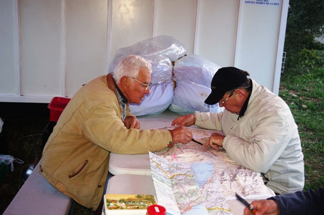 Briefing avant le départ entre Christian et Bernard qui reste à l’intendance aujourd'hui.