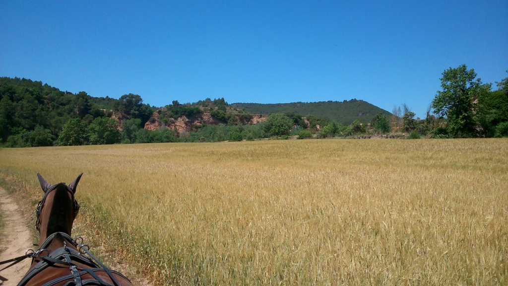 Nous ne savons pâs trop ou nous allons poser notre campement ce soir car depuis notre entrée en Espagne nous installons notre bivouac surtout ou il y a de l'eau et aussi un lieu agréable pour les chevaux.