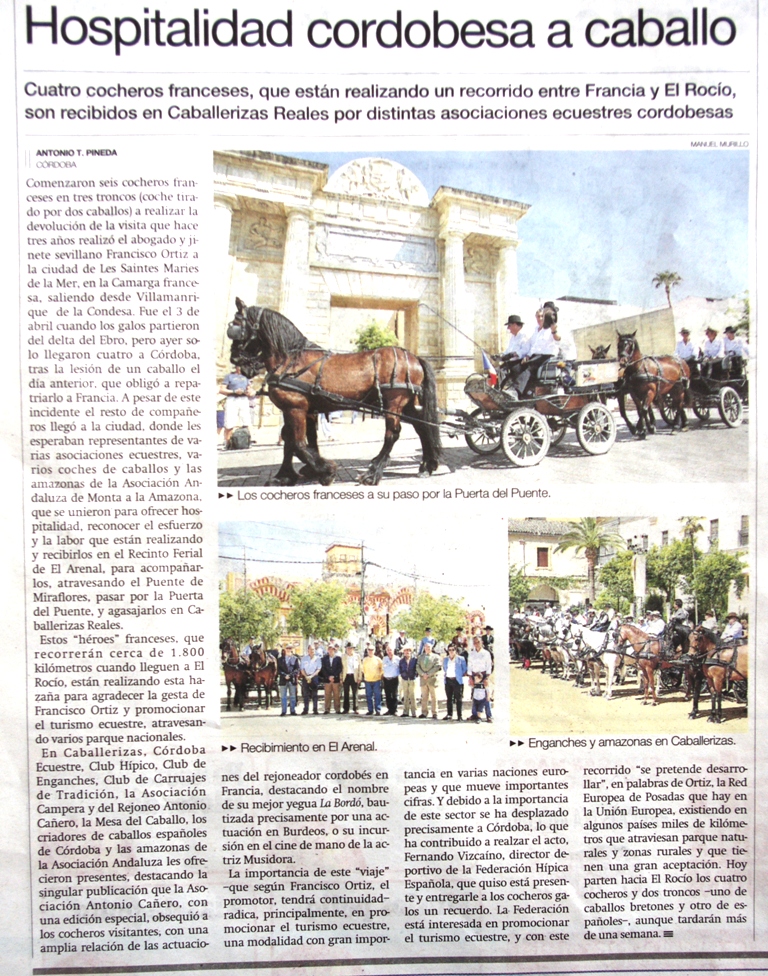 Article paru dans le journal "Diario de Cordoba " du 01 mai
