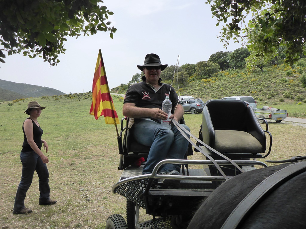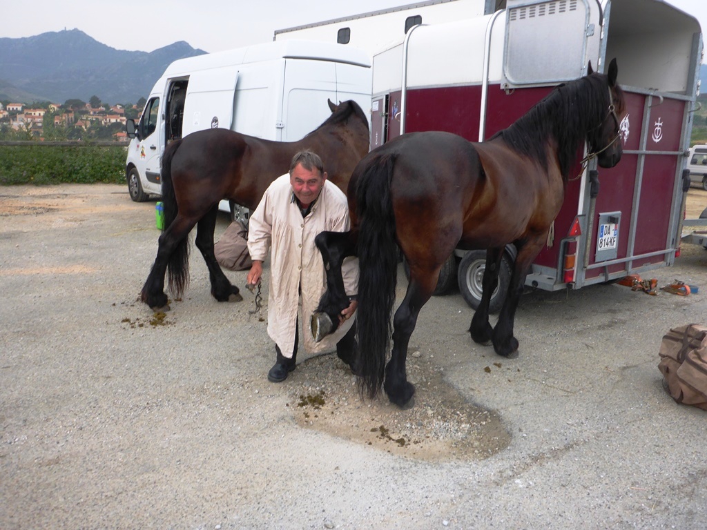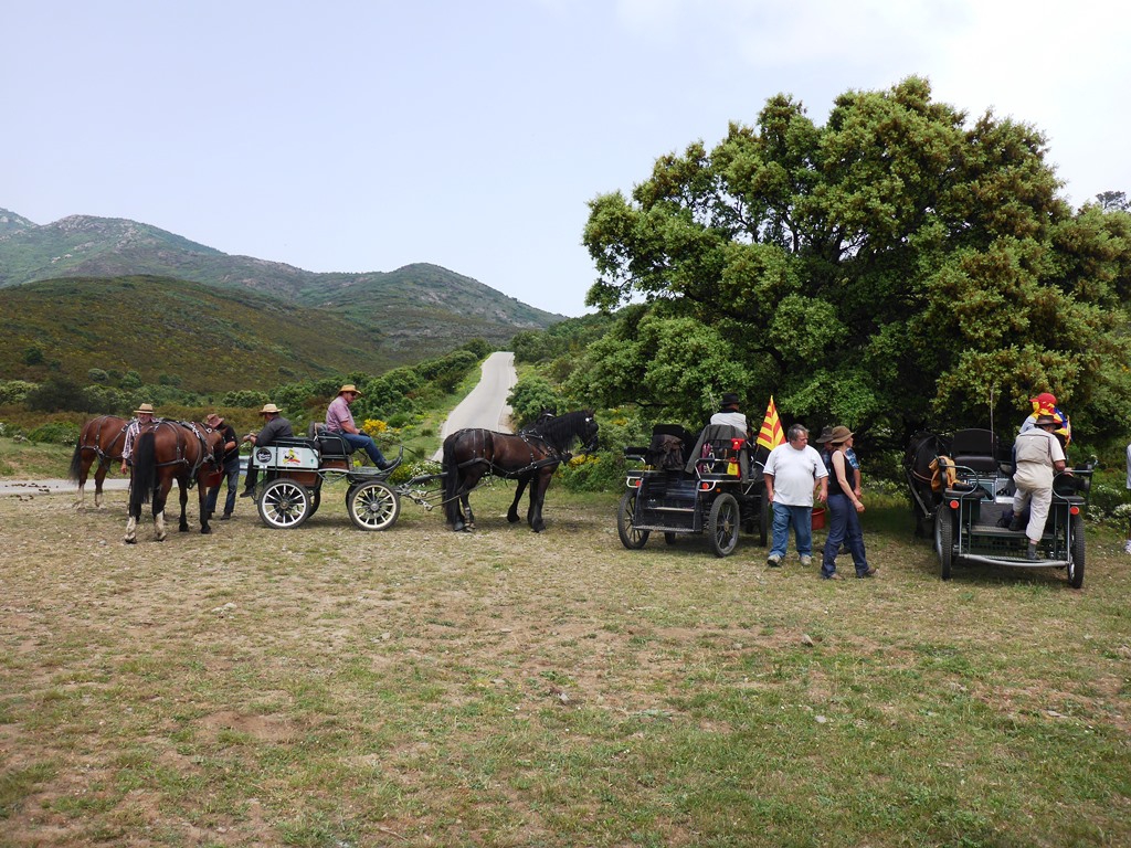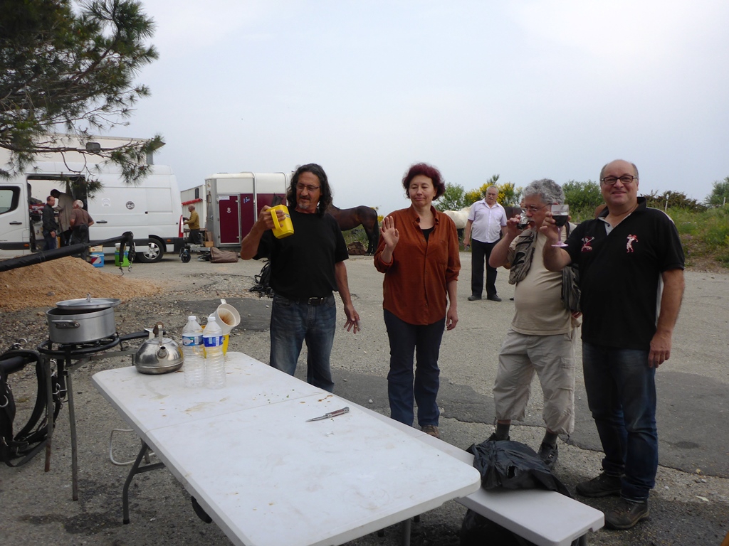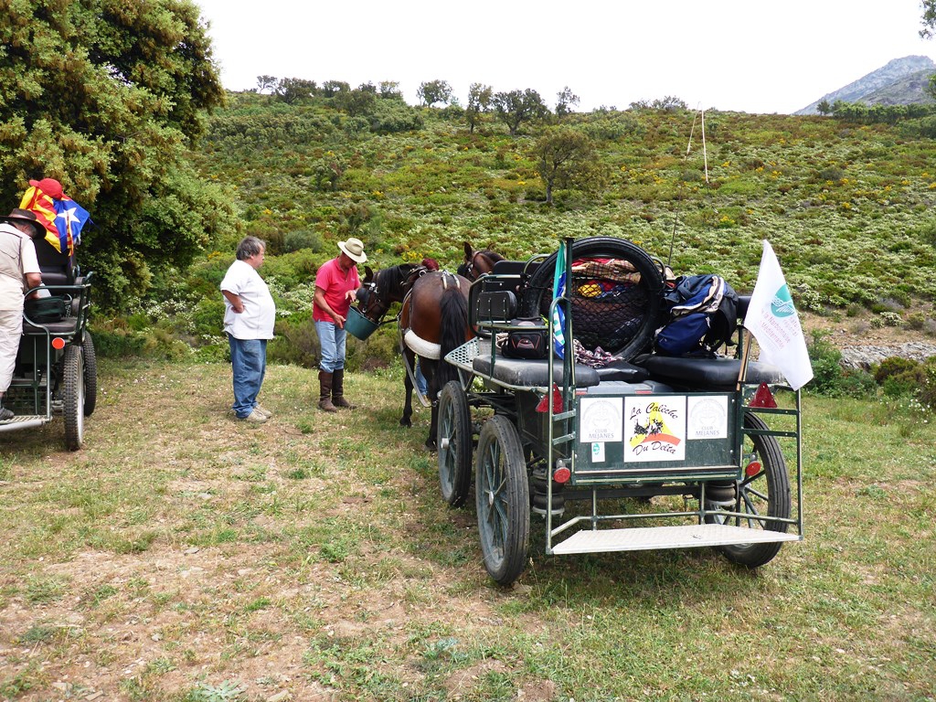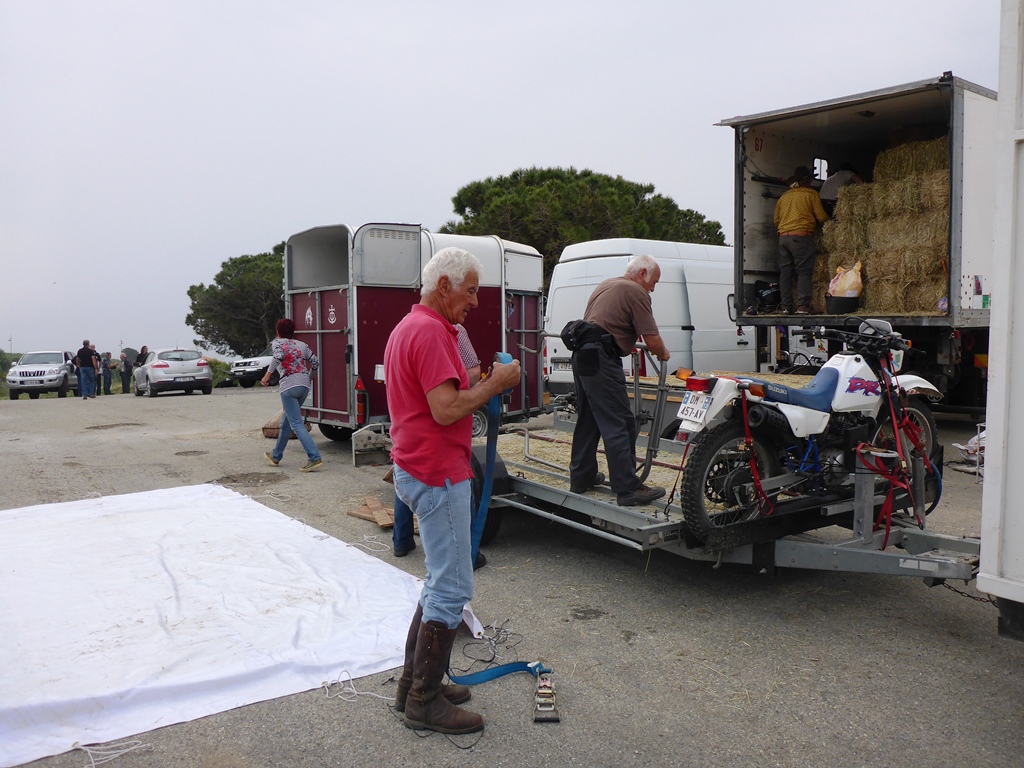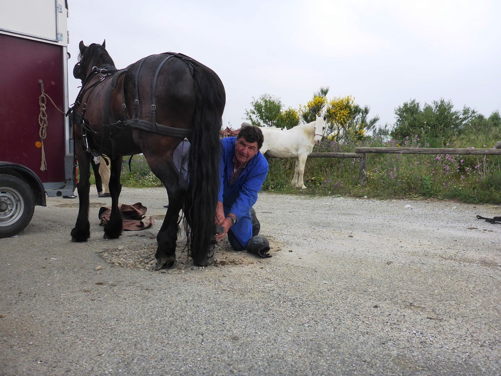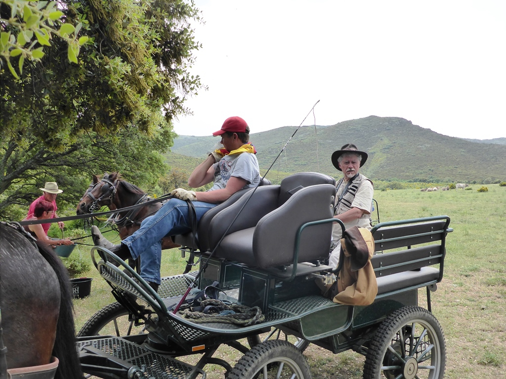 Un petit moment de détente et de repos de l'équipe d'intendance avant le passage des calèches et des cavaliers.