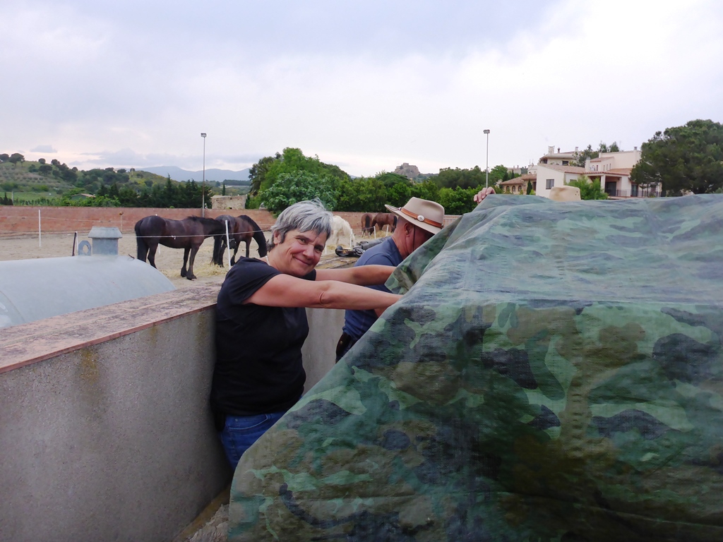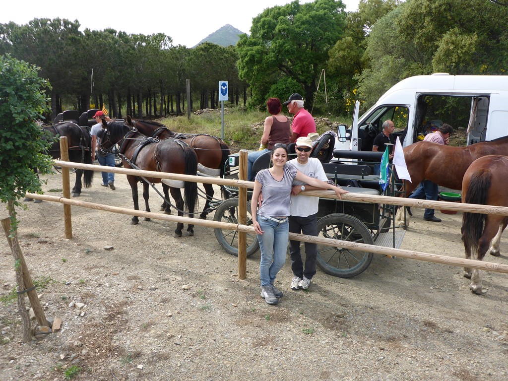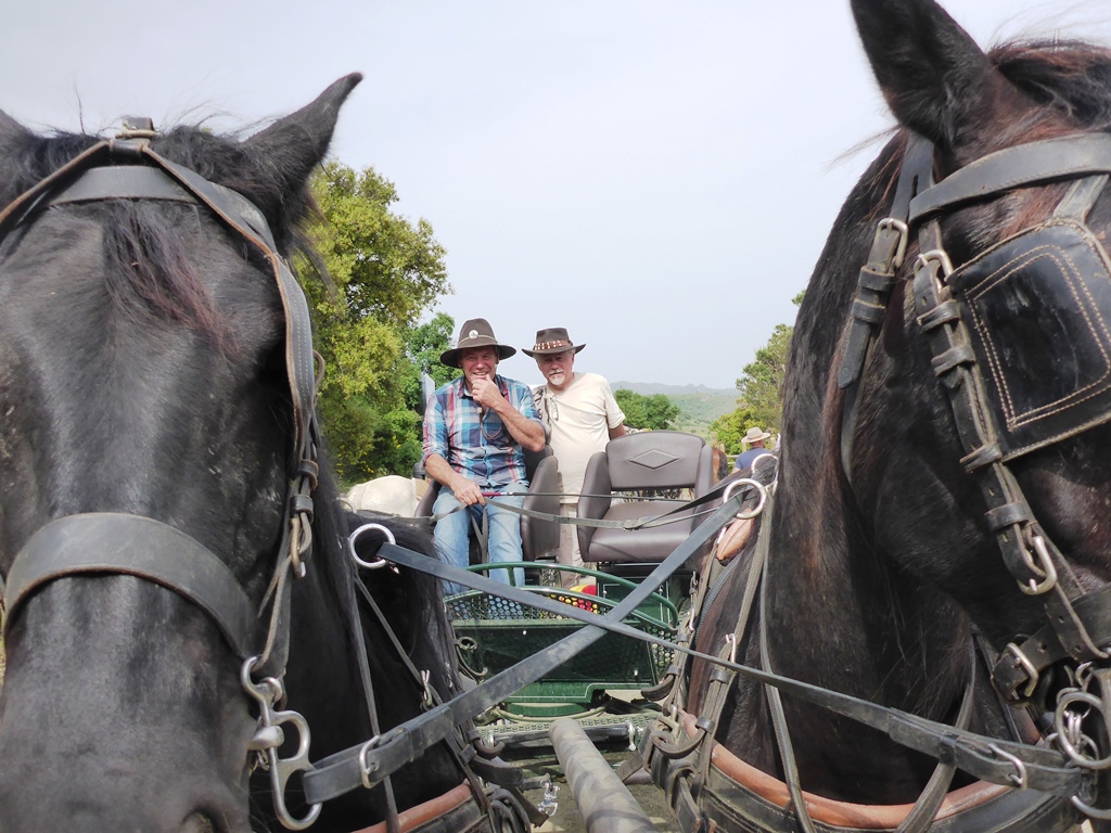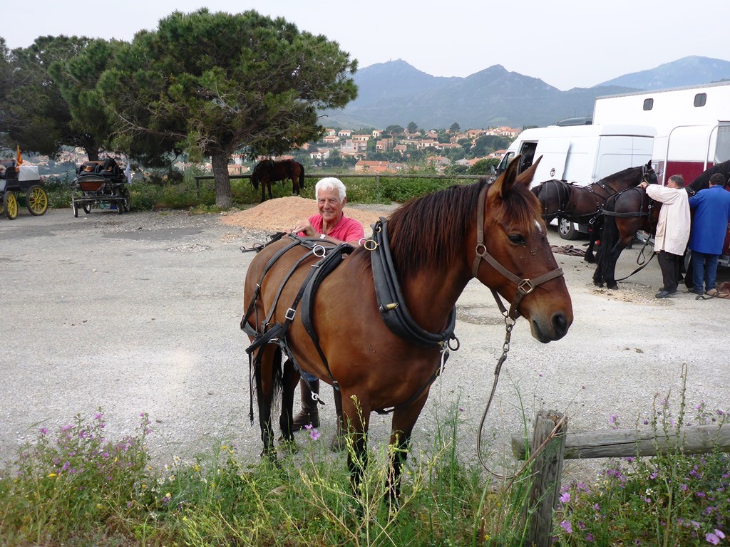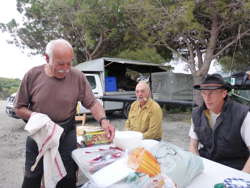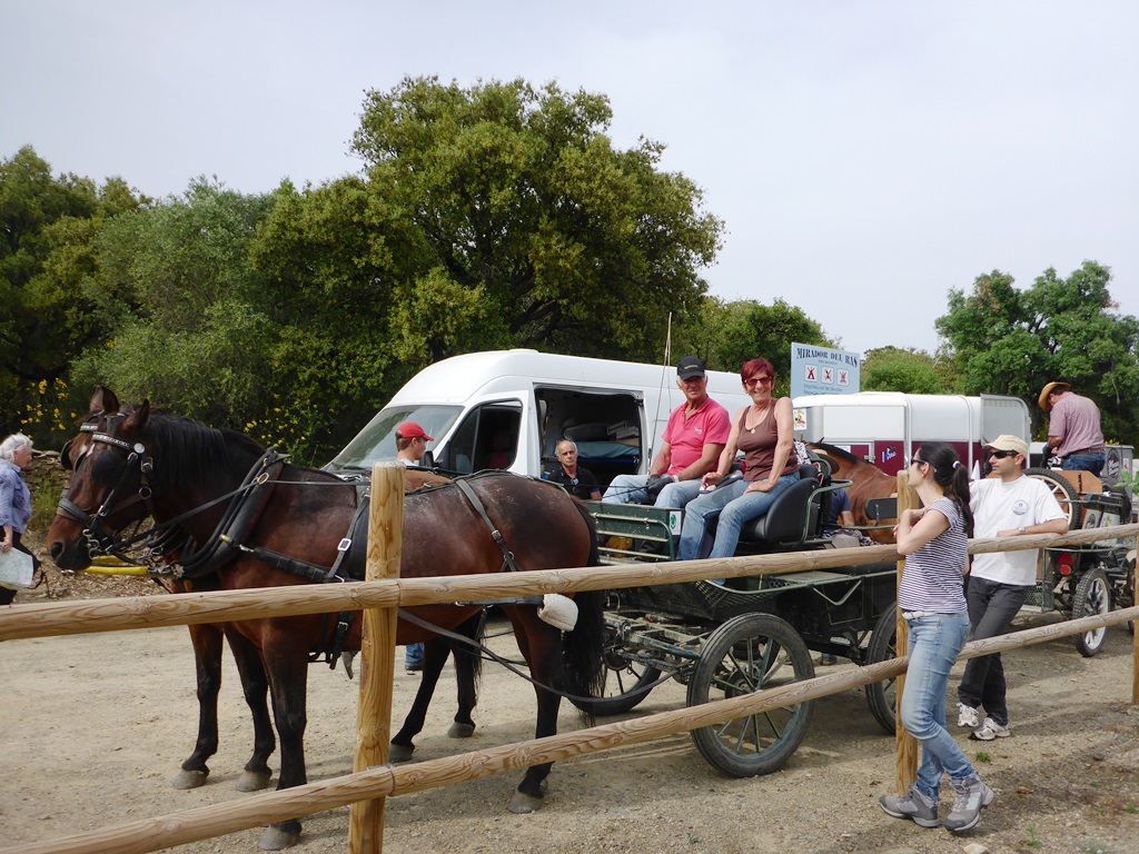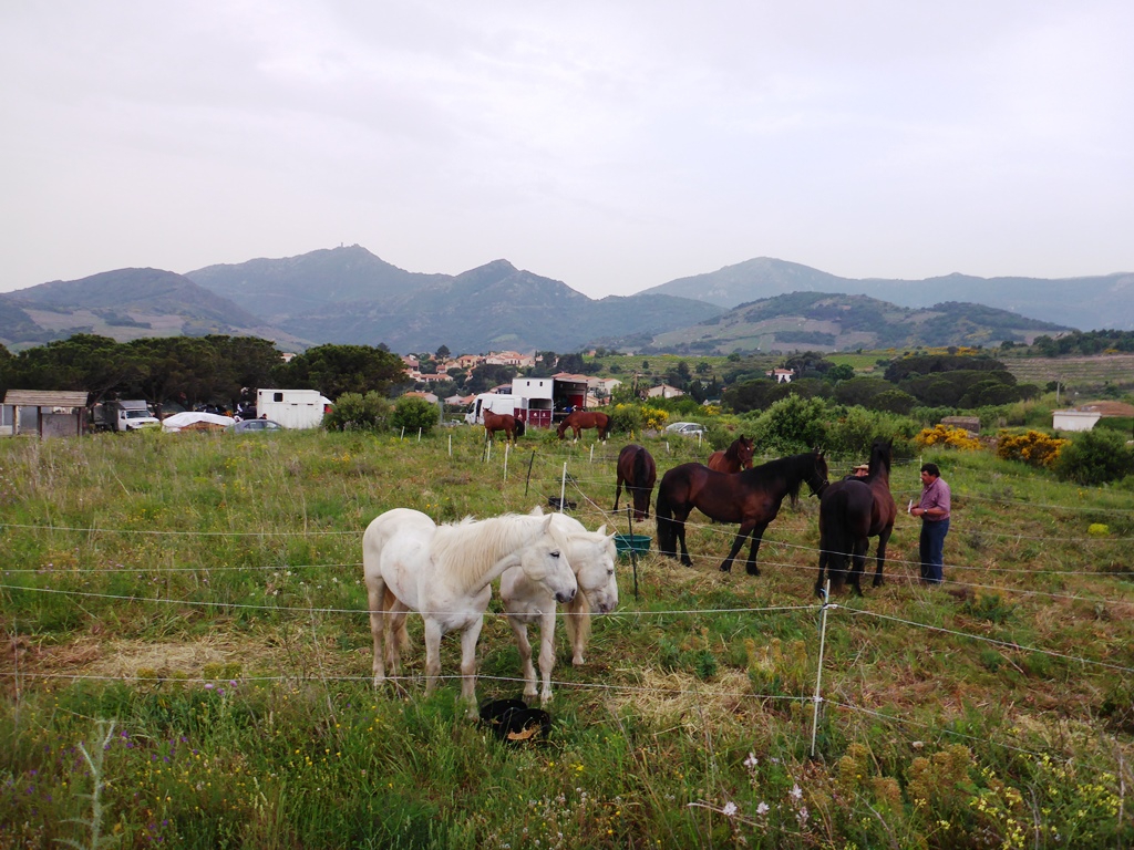 Un petit moment de détente et de repos de l'équipe d'intendance avant le passage des calèches et des cavaliers.