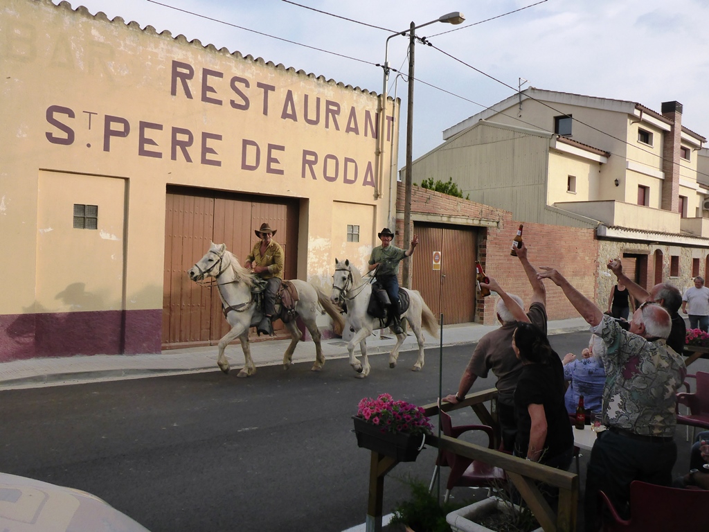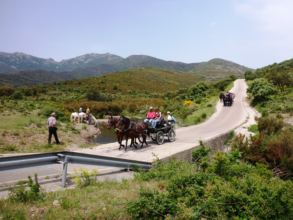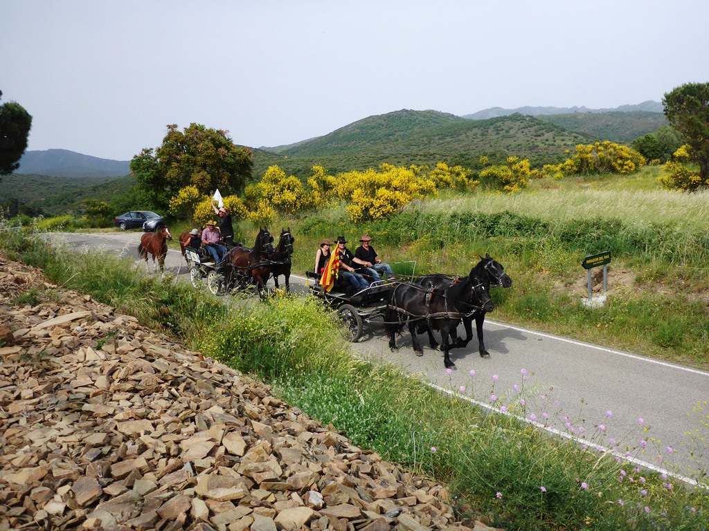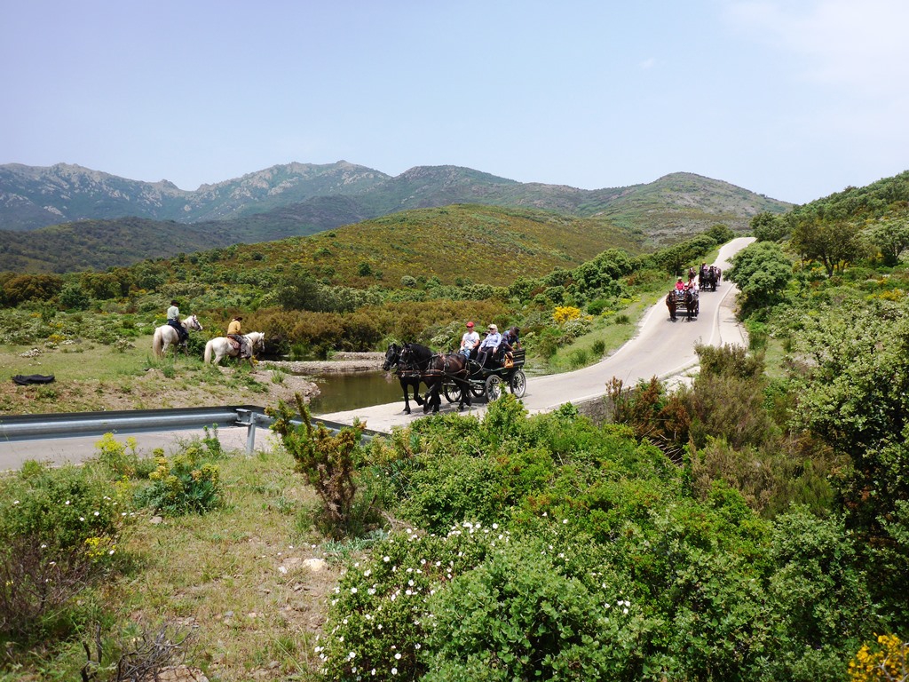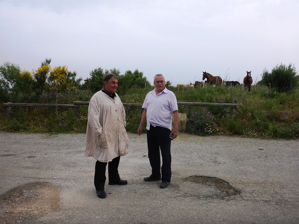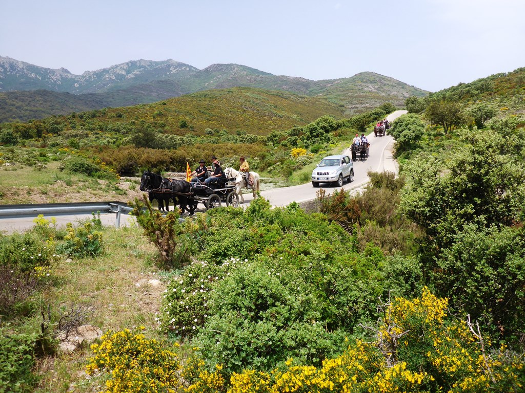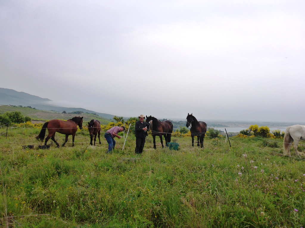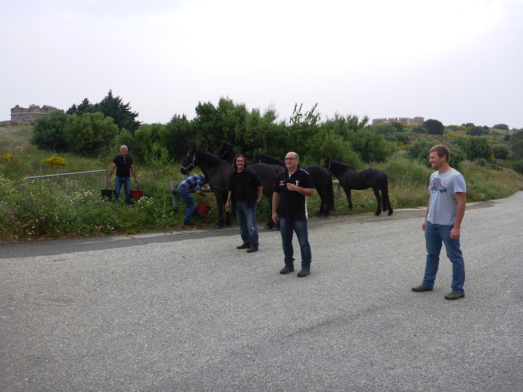 Un petit moment de détente et de repos de l'équipe d'intendance avant le passage des calèches et des cavaliers.