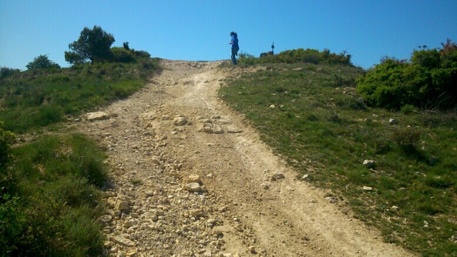 Nous arrivons a un passage trop difficile et nous allons emprunter du goudron car les autres chemins sont occupés par des taureaux.
