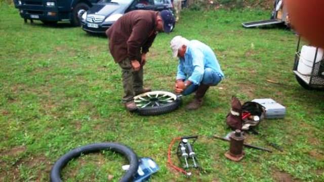 Une journée ne commence pas sans une réparation!! Roue crevée pour l'équipage Richard-Christian