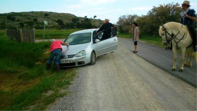 Bernard le cameraman tente de sortir sa voiture du fossé