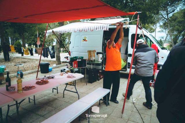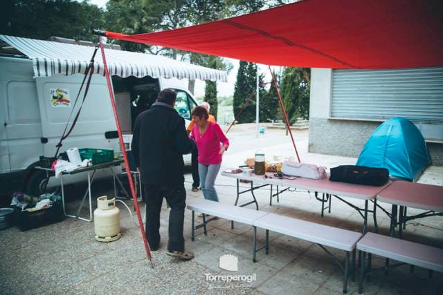 El Ayuntamiento de Torreperogil ha cedido así un espacio en el parque y les ha proporcionado luz y agua para que puedan realizar una parada de dos días y descansar para retomar el viaje hacia la aldea del Rocío, su última etapa.